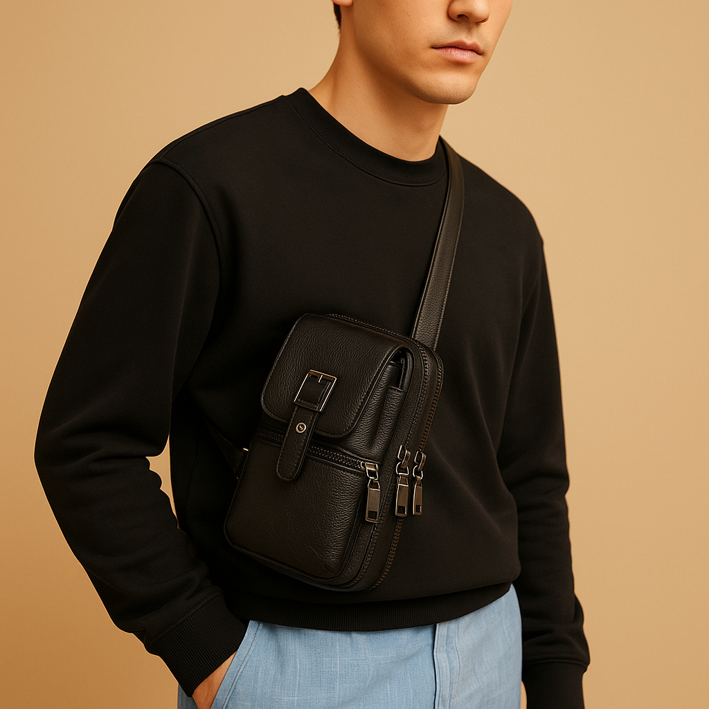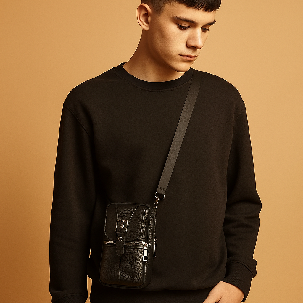 El Bolso Bandolera Antirrobo para Hombre | Estilo Clásico combina elegancia atemporal y funcionalidad moderna para acompañarte en cualquier momento del día. Su diseño compacto con cierre seguro mantiene tus pertenencias protegidas y organizadas, mientras que la correa ajustable ofrece un uso cómodo y adaptable. Perfecto para viajes, trayectos urbanos o actividades cotidianas, aporta un toque sofisticado a tu estilo diario.