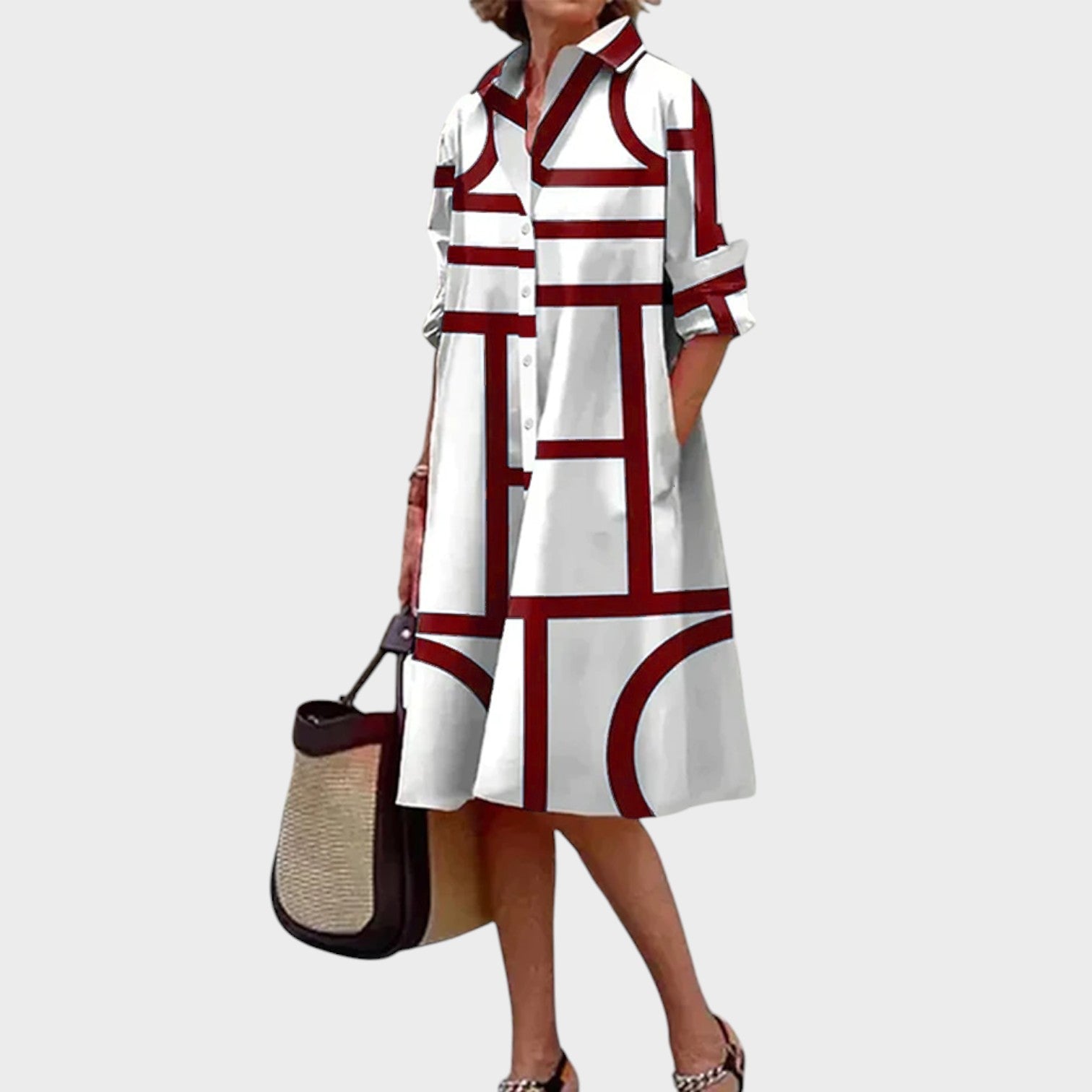 Regálate comodidad y elegancia con nuestro vestido. Perfecto para cualquier ocasión, este vestido realza tu estilo con su estampado geométrico único.