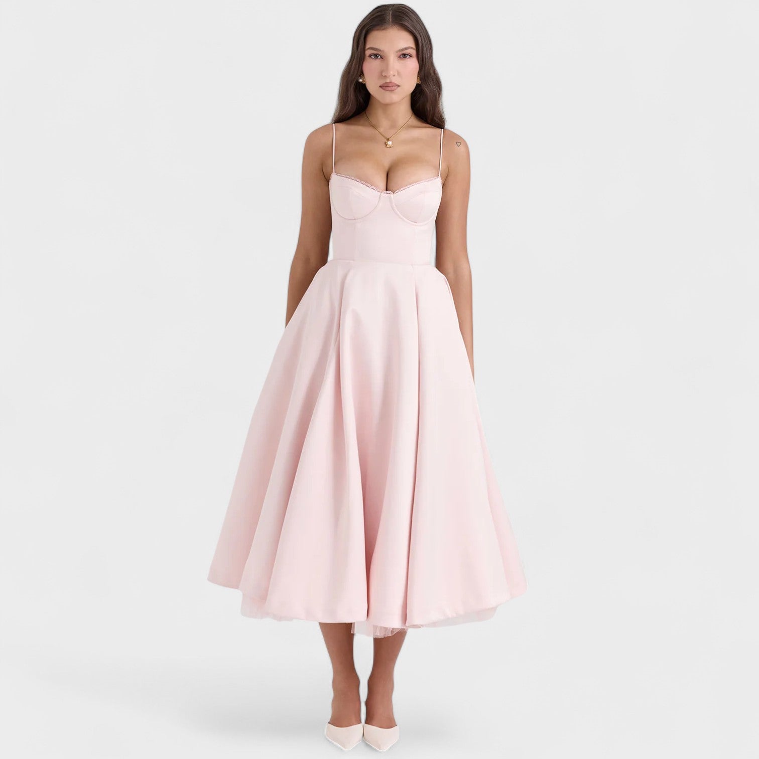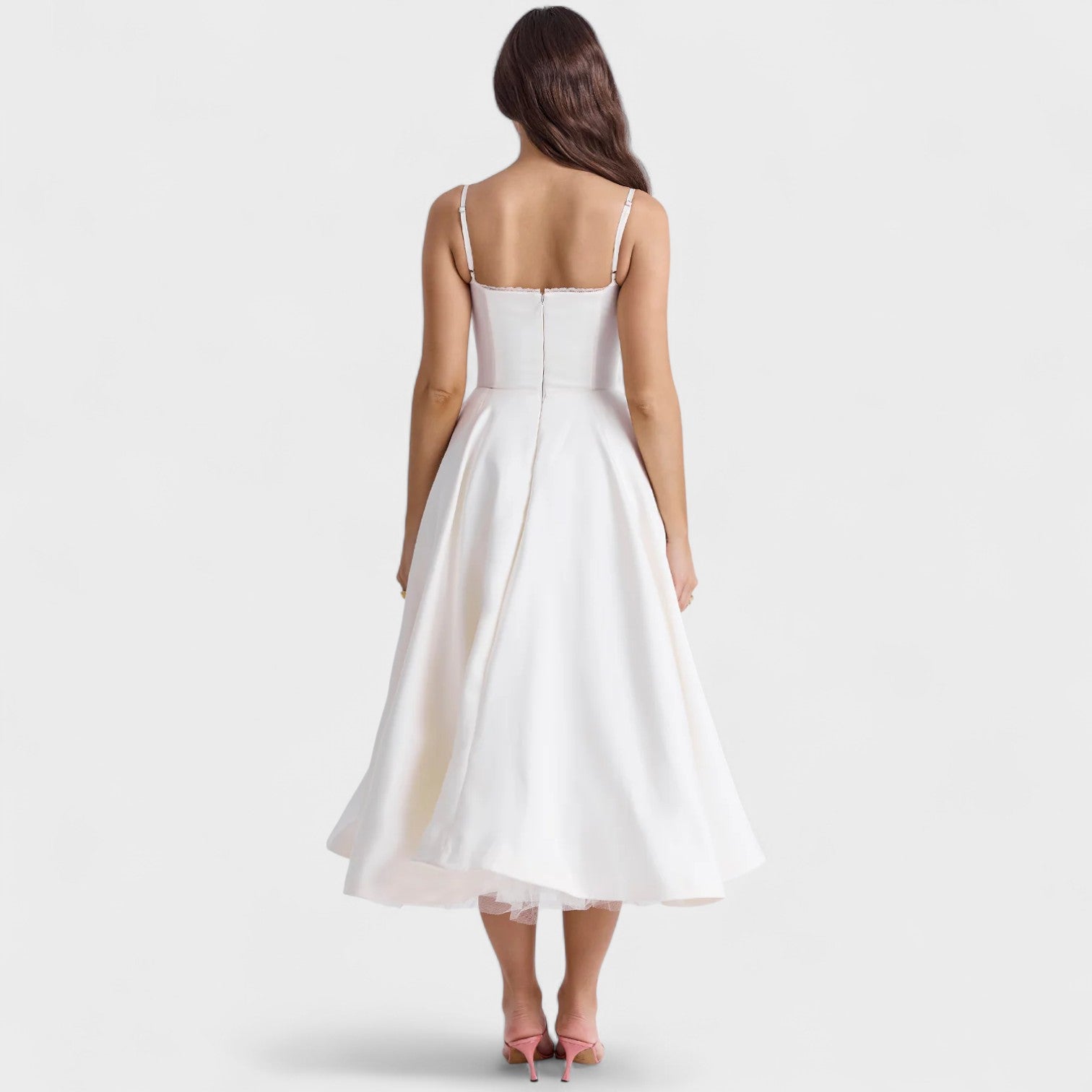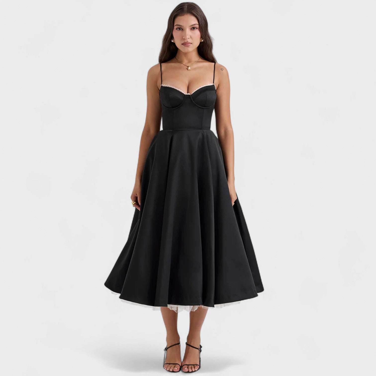 Detalles que enamoran: encaje delicado en el busto y acabado impecable que garantizan sofisticación en cada movimiento.