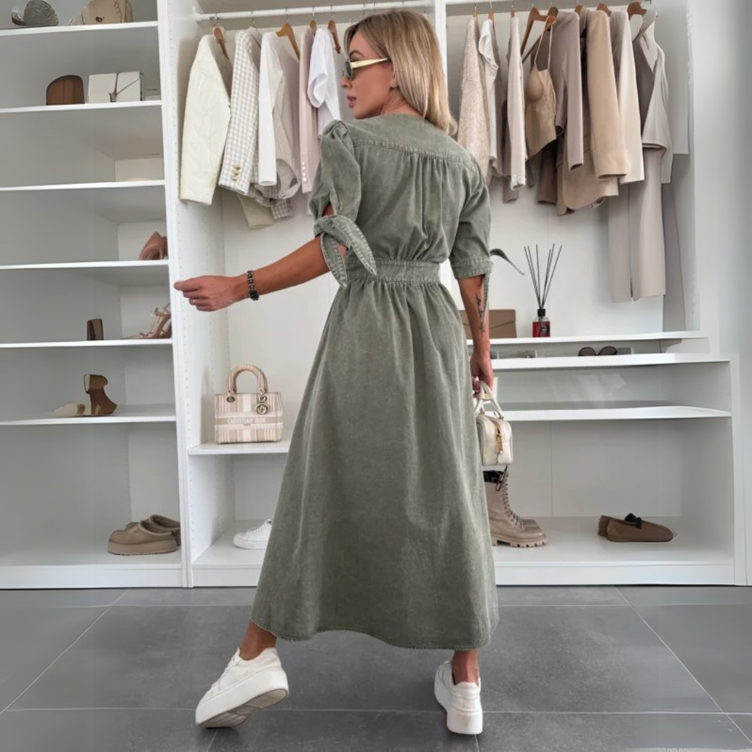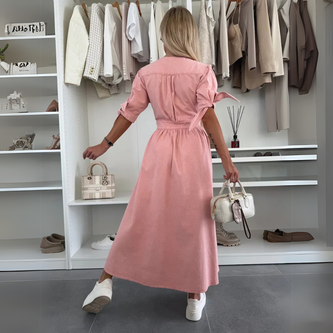 ¿También quieres mostrarte con tu mejor cara? Esos momentos en los que te sientes completamente cómoda y recibes piropo tras piropo. Con este elegante vestido lo conseguirás. Con cierre de botones y lazos en las mangas, ¡seguro que capta todas las miradas!
