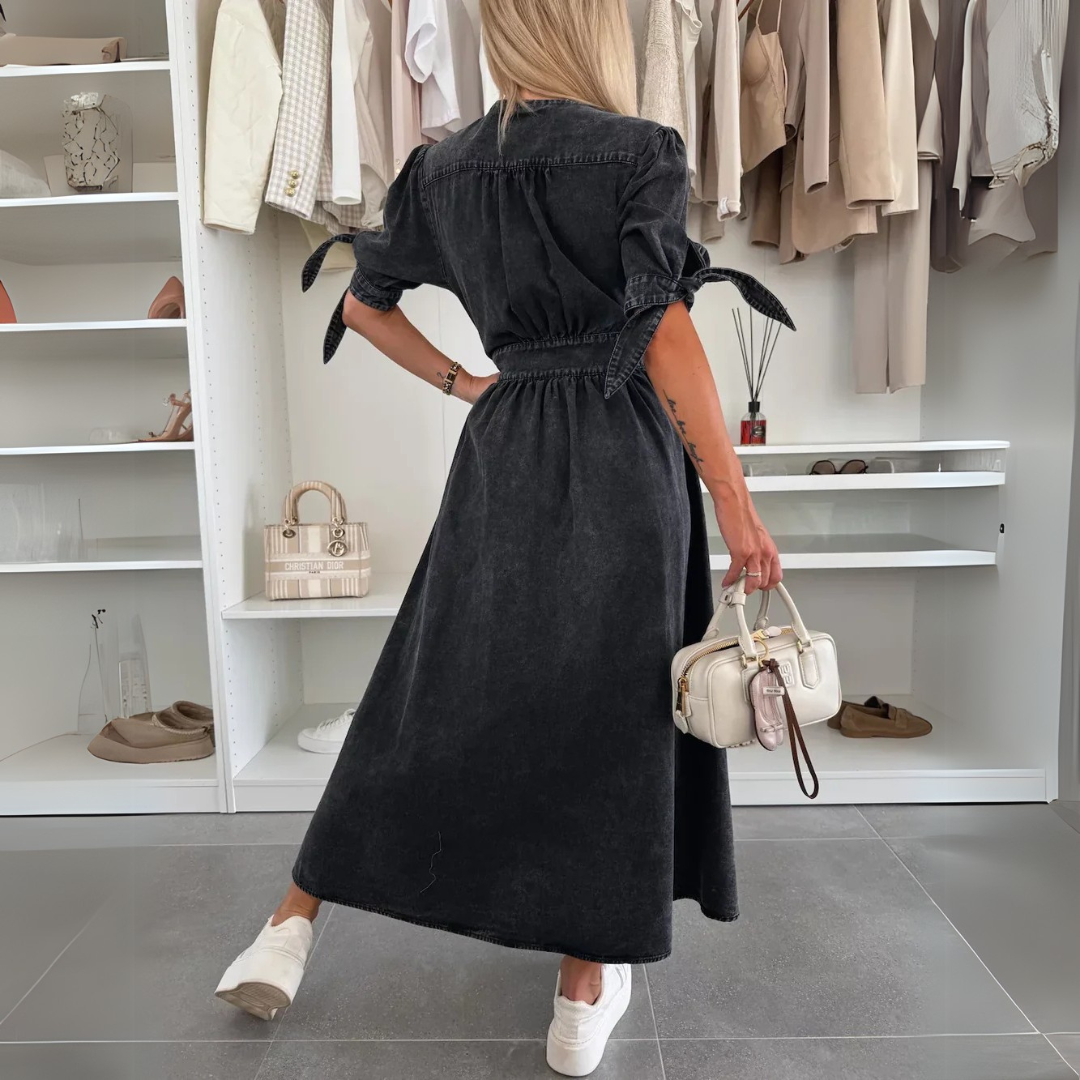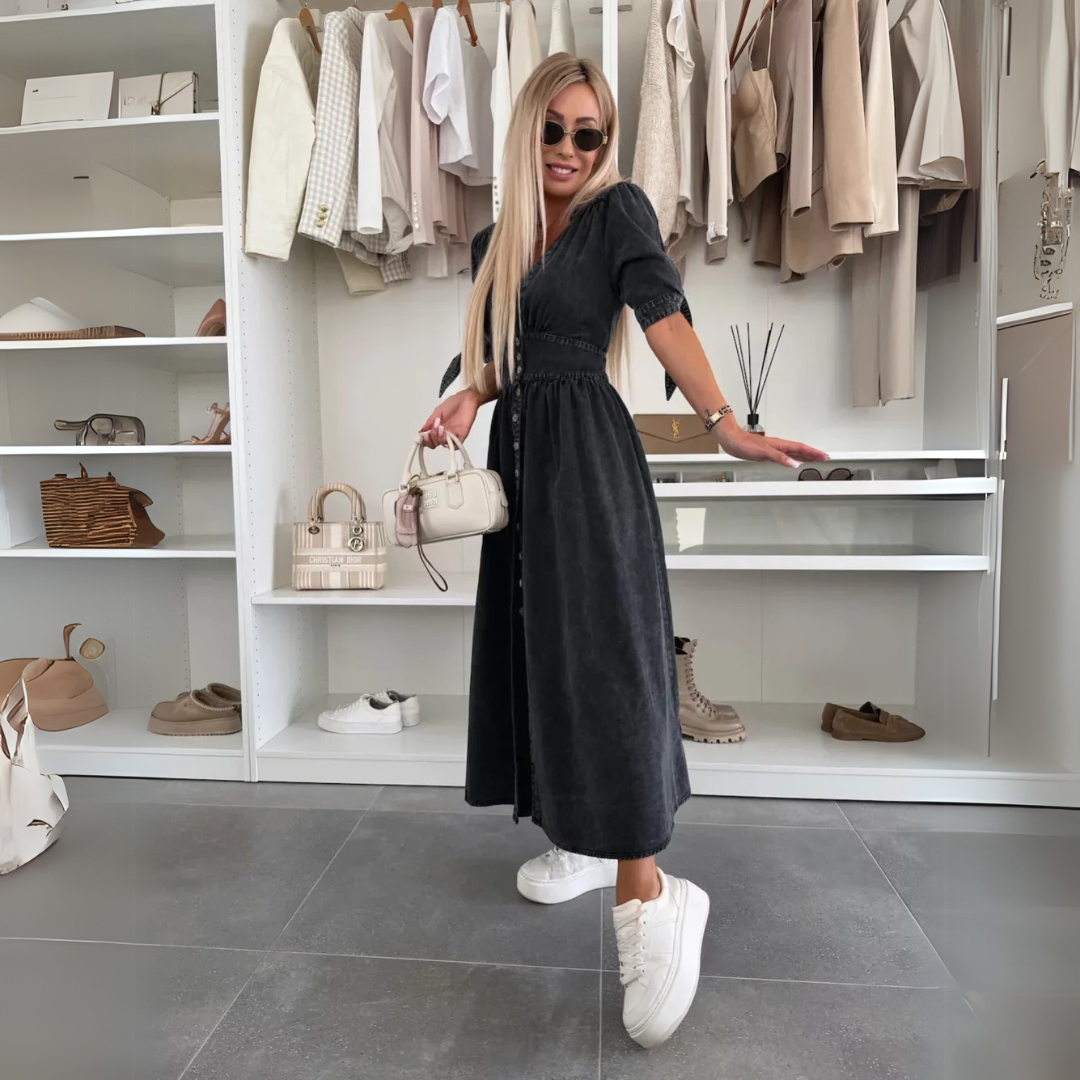 Versatilidad: El tejido tipo vaquero hace que este vestido sea fácil de combinar. Se puede llevar con deportivas para un look informal o con tacones para un look más elegante.